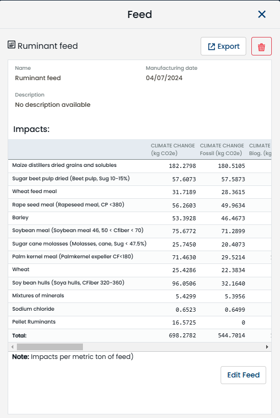 MyFeedPrint vám nabízí podrobný a komplexní souhrn dopadu krmiv na životní prostředí. Tyto hodnoty dopadu lze použít ve vašem formulačním systému.