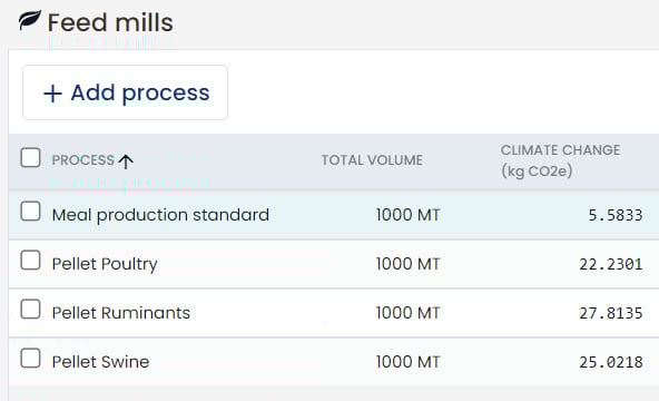 Calculate the overall carbon footprint of producing feed in your facilities. You can either determine the footprint of the different production lines in your feed mill or calculate an average value for the facility.