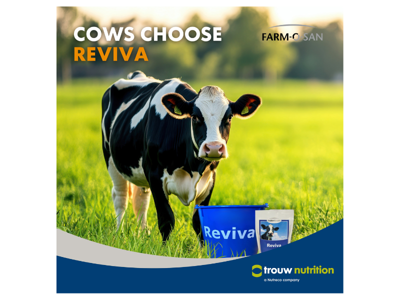 A good start to lactation is crucial to unlock the full potential of a dairy cow. Since a high percentage of culling rates of dairy cows is done during the first 60 days of the lactation, it is important to make sure that the fresh cow is fully supported. Farm-O-San Reviva will contribute to a higher dry matter intake, supports the calcium blood-levels and rehydrates the calved cow. Therefore Farm-O-San Reviva contributes to a more sustainable dairy business.